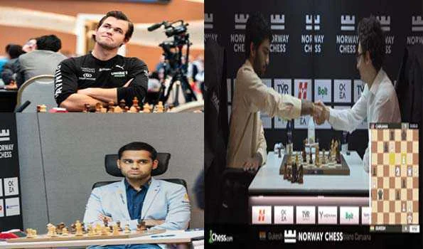 स्टवान्गर (नोर्वे) 30 मई (लाइव 7) विश्व चैंपियन भारत के डी गुकेश ने नॉर्वे शतरंज के ‘ओपन’ वर्ग में अमेरिका के ग्रैंड मास्टर फैबियानो कारूआना के खिलाफ रोमांचक आर्मागेडन टाई-ब्रेक में जीत दर्ज की। वहीं अर्जुन एरिगैसी को मैग्नस कार्लसन से हार का सामना करना पड़ा।