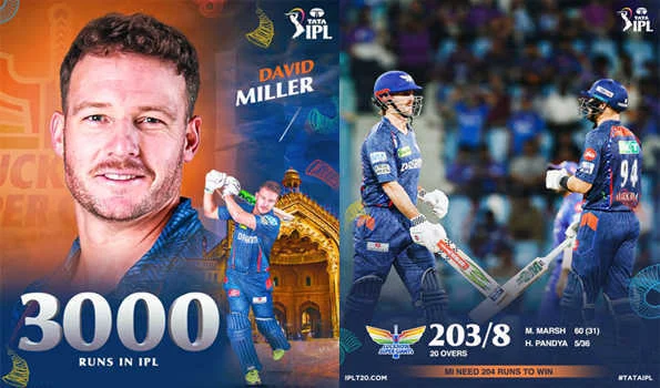 इकाना स्टेडियम में एलएसजी के कप्तान रिषभ पंत का बल्ला आज नहीं चला और वह मात्र दो रन ही बना सके। दूसरी ओर लखनऊ को बड़े स्कोर की तरफ बढ़ने से रोकने में मुबंई के हार्दिक पंड्या (36 रन पर पांच विकेट) की भूमिका अहम रही। पंड्या ने मारक्रम, निकाेलस पूरन,पंत,डेविड मिलर और आकाशदीप के महत्वपूर्ण विकेट झटके। मार्श और मारक्रम ने ओपनर की भूमिका का बेहतरीन इस्तेमाल किया और पहले पॉवर प्ले का भरपूर लाभ उठाते हुये मैदान के चारों ओर रनों की बौछार कर दी थी। मार्श ने मात्र 27 गेंदों पर अपना अर्धशतक पूरा कर लिया था। मार्श और मारक्रम ने सातवें ओवर तक 76 रन की साझीदारी की जिसके चलते लखनऊ एक बड़े स्कोर की ओर बढ़ता दिख रहा था। इस बीच मुबंई के युवा प्रतिभाशाली स्पिनर विग्नेश पुथुर ने मार्श को अपनी ही गेंद पर लपक कर खतरनाक हो रही साझेदारी का अंत किया।
