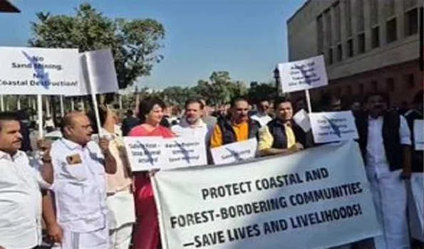 श्री गांधी के साथ यूडीएफ सांसदों ने केरल के तटीय और वन सीमावर्ती समुदायों की रक्षा के लिए विरोध प्रदर्शन किया।
