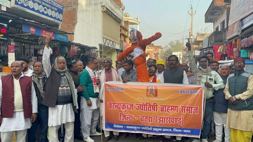 फिल्म स्टार गोविंदा की पत्नी सुनीता आहूजा द्वारा सोशल मीडिया पर ब्राह्मणों की संस्कृति के खिलाफ की गई कथित अमर्यादित टिप्पणी के विरोध में, कान्य कुब्ज ज्योतिषी ब्राहम्ण समाज ने रविवार को चतरा में जमकर विरोध प्रदर्शन किया।विरोध स्वरूप, समाज के लोगों ने केशरी चौक पर सुनीता आहूजा का पुतला दहन किया और उनके खिलाफ जमकर नारेबाजी की गई।
