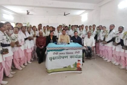 रांची नगर निगम की पहल, स्वर्णरेखा ग्रुप ऑफ इंस्टिट्यूशन के विद्यार्थियों को मिले फलदार पौधे