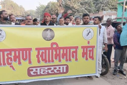 ब्राह्मण स्वाभिमान मंच नें वीर कुंवर सिंह चौक पर, IAS संतोष वर्मा का पुतला दहन किया