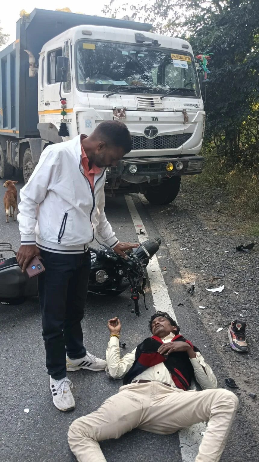 हाइवा ने बाईक को चपेट में लिया, युवक घायल