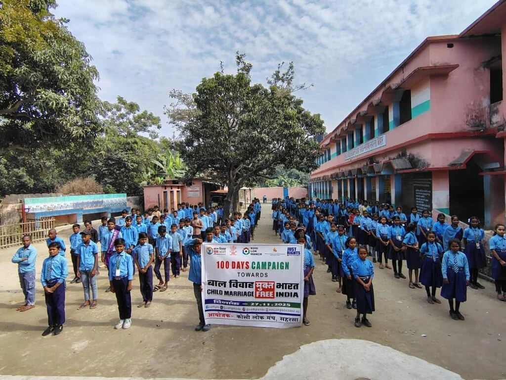 भारत सरकार के 100 दिवसीय विशेष अभियान से प्रेरित होकर कोसी लोक मंच ने घोषणा की है कि वह सरकारी एजेंसियों के साथ मिलकर सहरसा को एक साल के भीतर बाल विवाह मुक्त जिला बनाएगा। ‘बाल विवाह मुक्त भारत’ अभियान के तहत स्कूलों, धार्मिक स्थलों, विवाह संबंधी सेवाओं और पंचायतों पर विशेष फोकस किया जाएगा। कोसी लोक मंच, देश के सबसे बड़े बाल अधिकार नेटवर्क जस्ट राइट्स फॉर चिल्ड्रेन का सहयोगी संगठन है, जिसने पिछले एक वर्ष में देशभर में एक लाख से अधिक बाल विवाह रोके हैं।