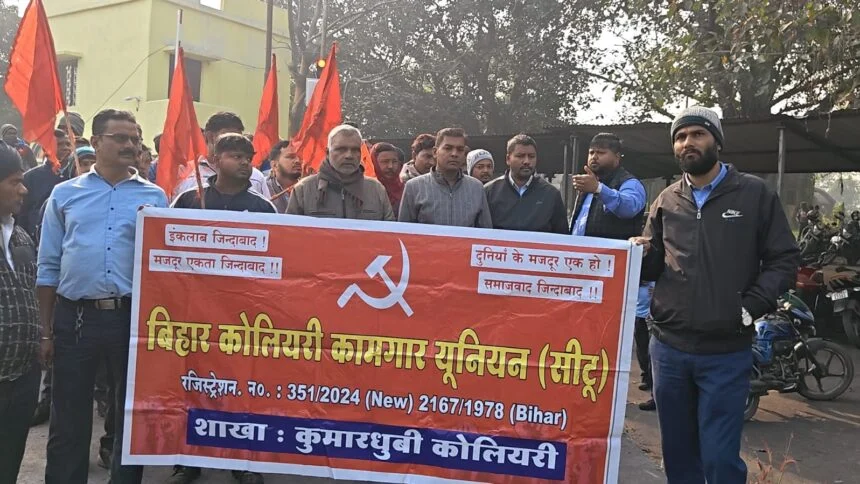 केन्द्र की मोदी सरकार द्वारा ५५ श्रम कानूनों को समाप्त कर चार लेबर कोड बनाये जाने के विरोध में विहार कोलियरी कामगार यूनियन द्वारा मुगमा क्षेत्र की सभी कोलियरियों में विरोध प्रदर्शन किया गया। क्षेत्रीय अध्यक्ष आगम राम ने कहा कि देशी-विदेशी के पूँजीपतियों तथा कॉरपोरेट घराना के इशारे पर केन्द्र सरकार में मजदूरों के अधिकारों को समाप्त कर दिया है। यह मज़दूरों को बंधुत्व मजदूर बनाने की साजिश है। हमारे पूर्ववर्ती मजदूरों ने काफी संघर्ष और कुर्बानी देकर मजदूरों के सुरक्षा कवच के रूप में आजादी के पहले और बाद में कीमत पर समाप्त नहीं होने दो कानून बनवाया था, उसको हम किसी भी कीमत पर समाप्त होने नहीं देंगे। जिस तरह किसानों ने चार कृषि कानून को ऐतिहासिक लड़ाई लड़कर रद्द करवाया इस तरह मजदूर भी लड़कर लेबर कोड को रद्दी की टोकरी में डलवाएंगे I विभिन्न कोलियरियों में हुए आन्दोलन का नेतृत्व आगम राम रामजी यादव, आमीत मुखजी भागन बाउरी मो० अख्तर, दिलीप सिंह वापी गोप, विनय सिंह कमल बावरी, दीपक सिंह, लालू ओझा, खोखन दास, संजय सिंह शुभम विश्वकर्मा, रामानन्द राजभर, सनोज चौहान, तारकनाथ सहिदास, हरेन्द्र शमी, उपेन्द्र महतो, काजल गोराई, देवेन्द्र मिश्रा, हरे राम इत्यादि ने किया।