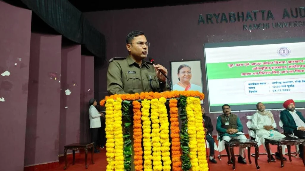 इस समारोह में संयुक्त रूप से रांची डीसी मंजूनाथ भजंत्री और रांची के वरीय पुलिस अधीक्षक राकेश रंजन ने, विशिष्ट आंदोलनकारियों को सांकेतिक रूप से प्रमाण-पत्र प्रदान करते हुए, राज्य सरकार की ओर से उनके योगदान के प्रति सम्मान और कृतज्ञता व्यक्त की। उन्होंने कहा कि झारखंड आंदोलनकारी राज्य निर्माण की आधारशिला हैं और उनकी भूमिका को सदैव सम्मानपूर्वक याद किया जाएगा।