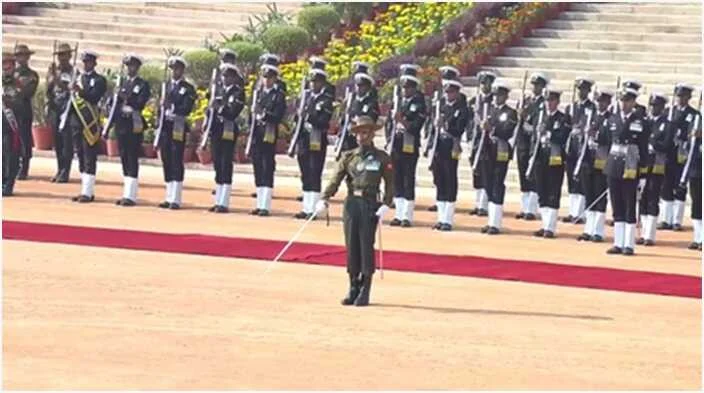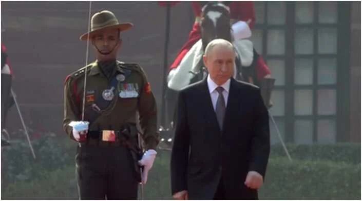 राष्ट्रपति भवन पहुंचने पर पुतिन ने दोनों भारतीय नेताओं से औपचारिक अभिवादन किया, जिसके बाद उन्हें गार्ड ऑफ ऑनर प्रदान किया गया। समारोह के दौरान पहले रूस और फिर भारत का राष्ट्रगान बजाया गया। पुतिन ने गार्ड का निरीक्षण करते हुए सम्मान स्वीकार किया और भारतीय प्रतिनिधिमंडल के सदस्यों से परिचय भी प्राप्त किया।