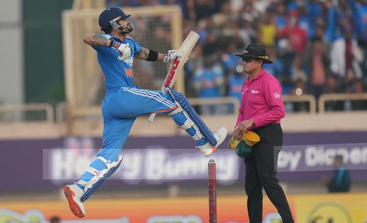 भारतीय पारी में विराट कोहली ने शानदार शतक जमाया। उन्होंने 102 गेंदों पर 103 रन बनाकर अपना 52वां वनडे शतक पूरा किया। अंतरराष्ट्रीय क्रिकेट में यह उनका 83वां शतक है। कोहली की इस पारी ने घरेलू वनडे में 50+ स्कोर बनाने का विश्व रिकॉर्ड भी तोड़ दिया। इससे पहले सचिन तेंदुलकर ने 58 बार घरेलू वनडे में 50+ स्कोर बनाए थे, जबकि कोहली ने यह उपलब्धि 59वीं बार हासिल की।
