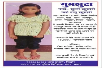 चतरा में लापता किशोरी मुन्नी कुमारी का शव बरामद, 28 दिन से थी गायब